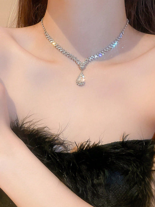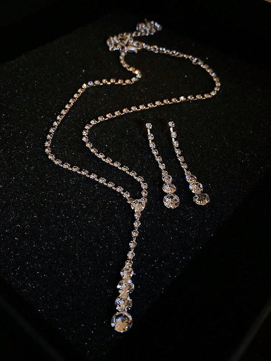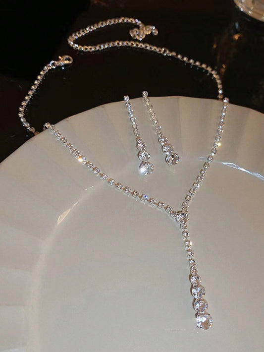 مجموعة أقراط و عقد تصميم سلسلة مرصعة