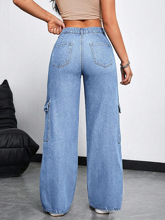 جينز نسائي واسع الساق مريح