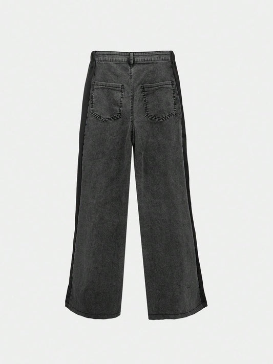 بنطلون جينز مغسول ساق عريضة