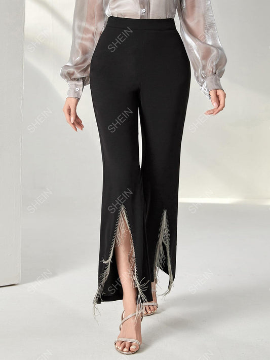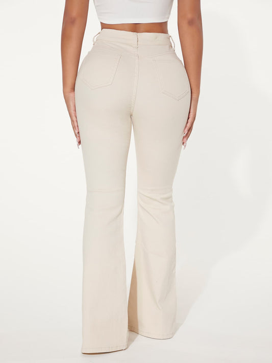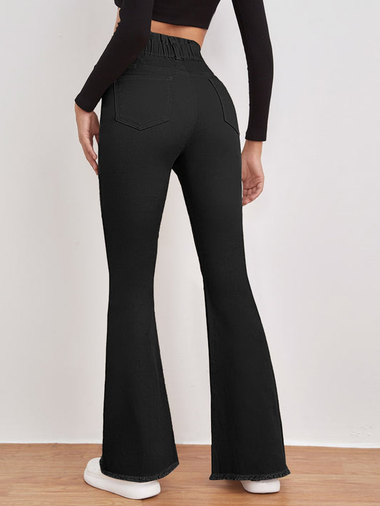 بنطلون جينز بساق واسع من الاسفل بسستة طائر بخصر عالي