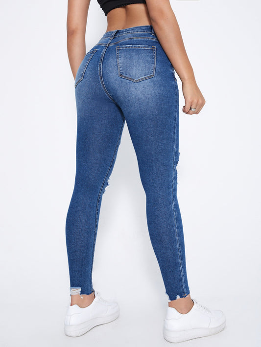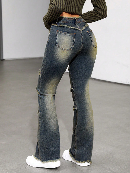 بنطلون جينز مدبب ممزق مهتري الحواف