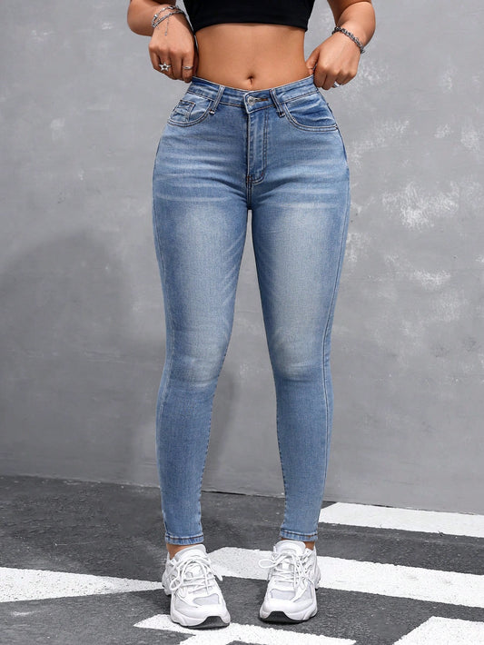 بنطلون جينز حريري مطاط بجيوب للنساء