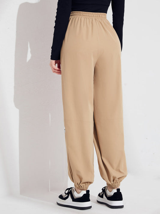 سروال المظلة موحدة اللون جيب قلاب رباط خصر