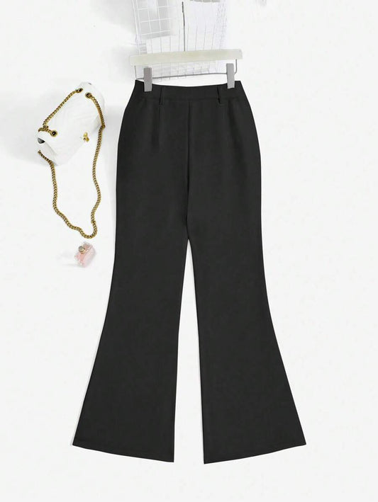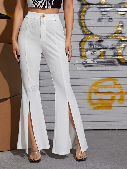 بنطلون بساق واسع موحدة اللون فتحة للفخذ