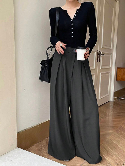 بنطلون بساق واسع ربطة امامية بحافة مطوي