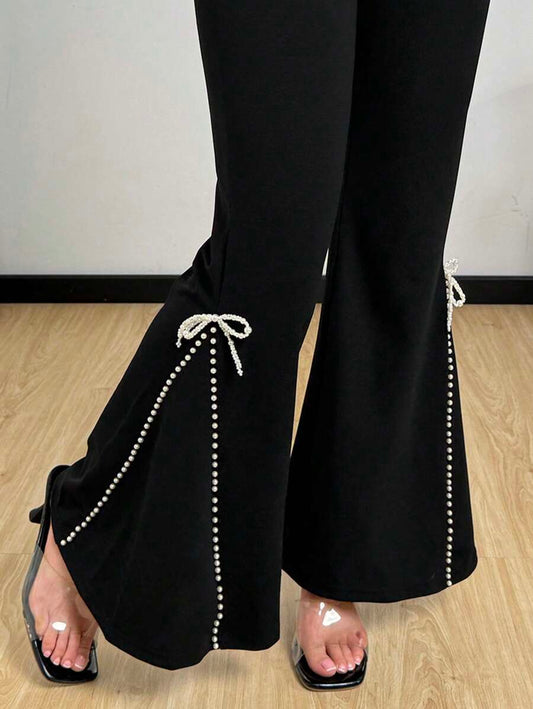 بنطلون جينز نحيل مطرز بلؤلؤ