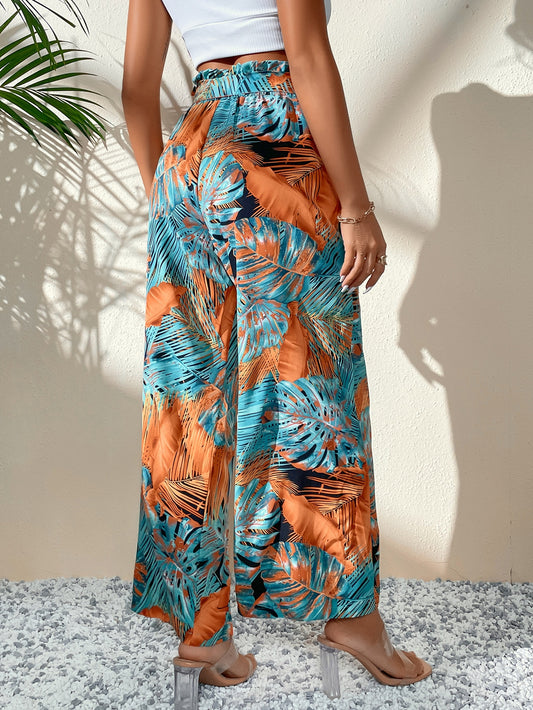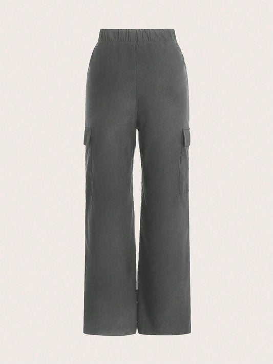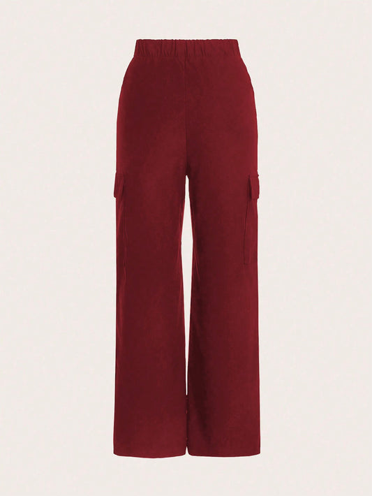 سروال نسائي، لون سادة، ساق واسعة