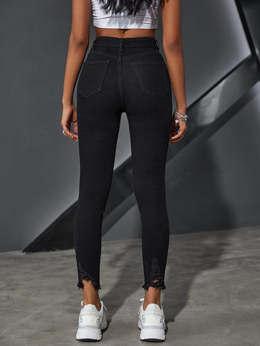 جينز نحيل ممزق خصر عالي
