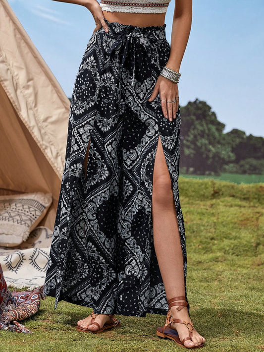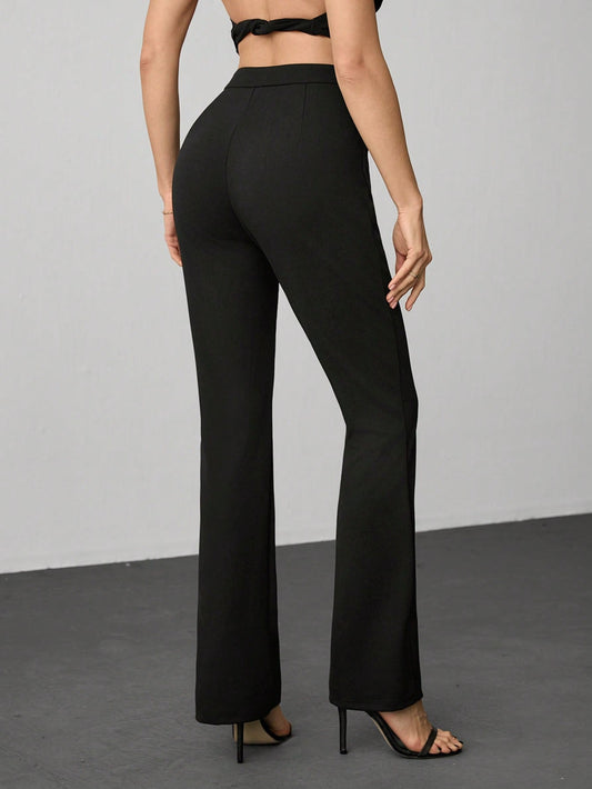 بنطلون موحدة اللون بحافة شق ملابس العمل