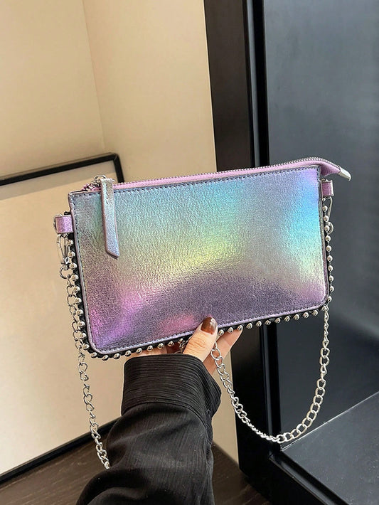 حقيبة مكياج مربعة صغيرة مع سحاب بسلسلة