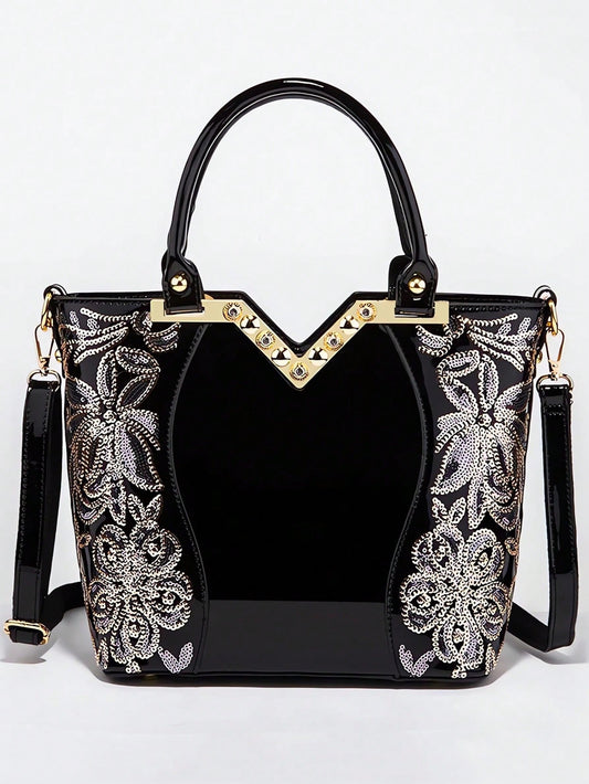 حقيبة كتف كاجوال فاخرة ذات سعة كبيرة مطرزة