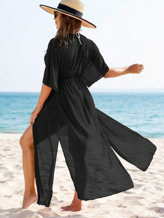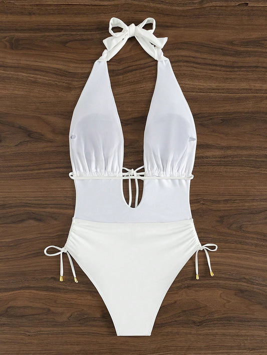 مايوه نسائي مقنع مائل بتباين الألوان لشاطئ