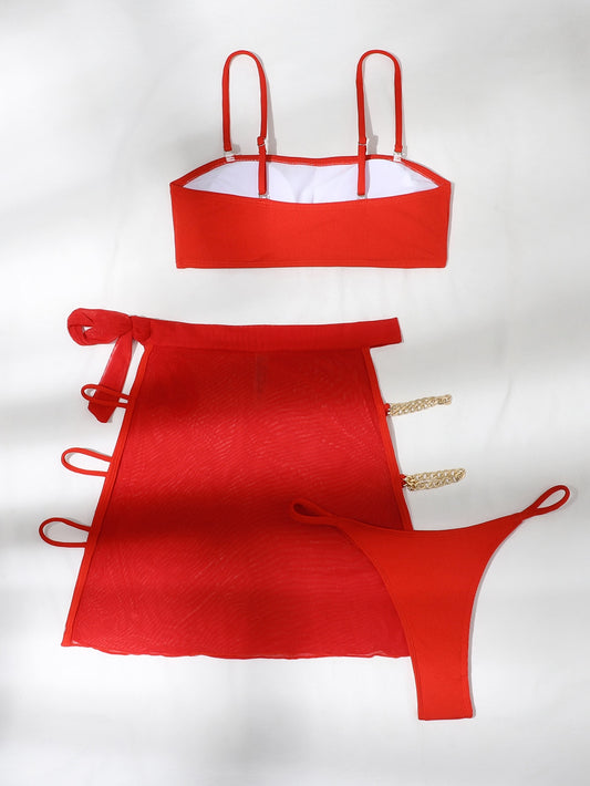 بيكيني عادي مع تنورة شاطئية وزوج حمالة