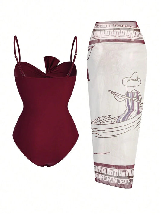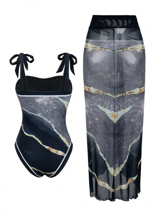 ملابس سباحة قطعة واحدة بطباعة استوائية