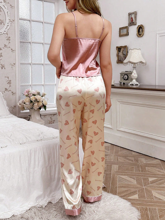 طباعة شفاة صدرية كامي مع بنطلون طقم بيجامة