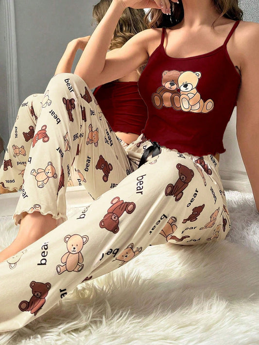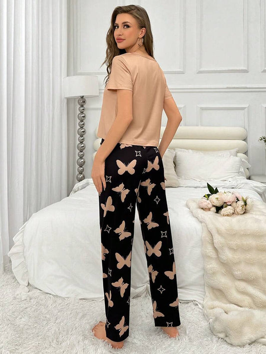 طقم بيجامة للسيدات بطبعة قلب وفراشة ونجمة