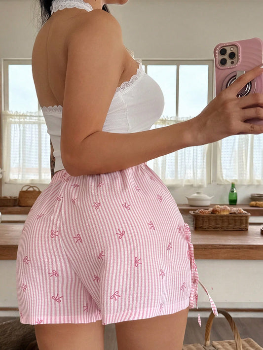 رومبير ملابس نوم نسائي مربعات مع طبعة عقدة