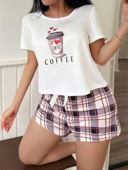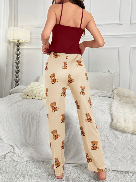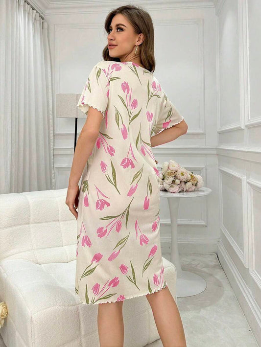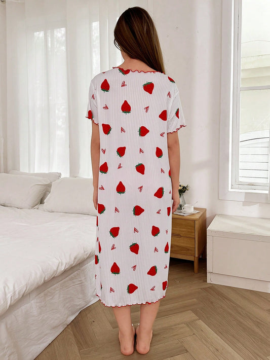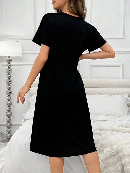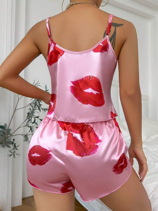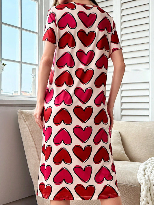 فستان نوم قميص كامي ساتان مطبوع بقلب صيفي