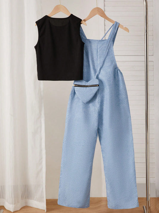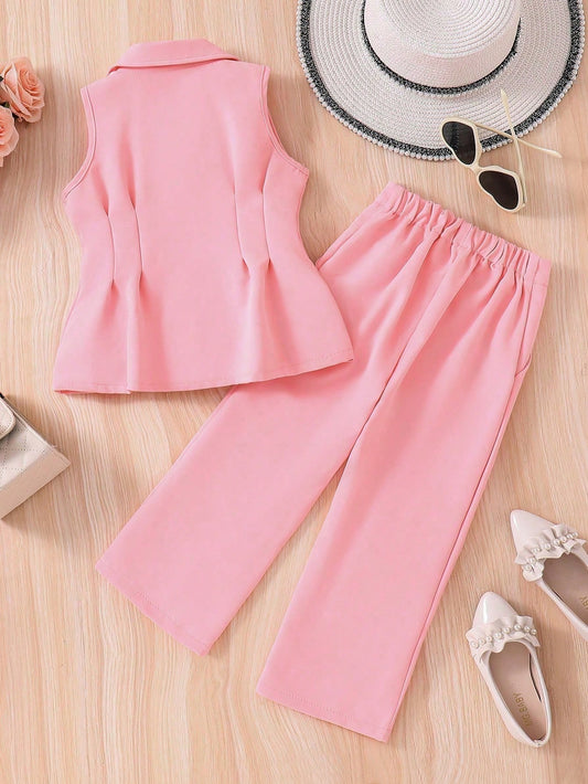 بدلة بنطلون وسترة بلا أكمام بقصة أنيقة