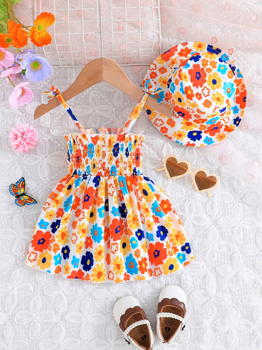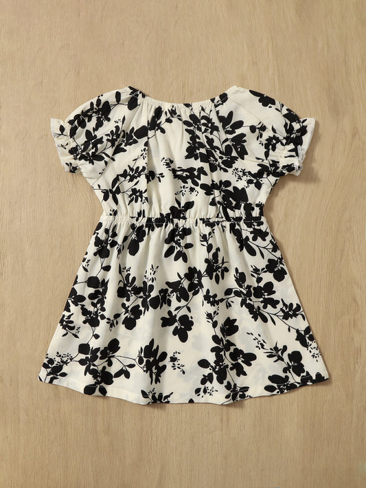 فستان طباعة الأزهار اكمام منتفخة قوس امامي