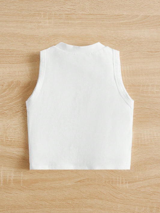 لباس علوي تانك محبوك مضلع قص مجوف بنت طفل