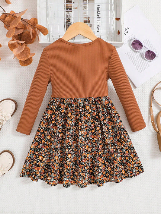 فستان وسط أنيق بياقة دمية وطبعات زهرية