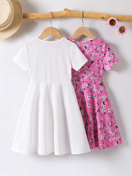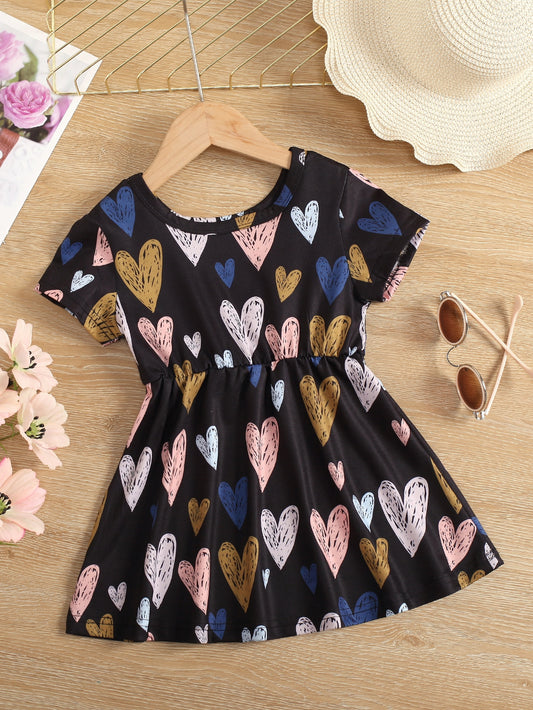 مجموعة فستان قصير بأكمام قصيرة بنمط قلوب
