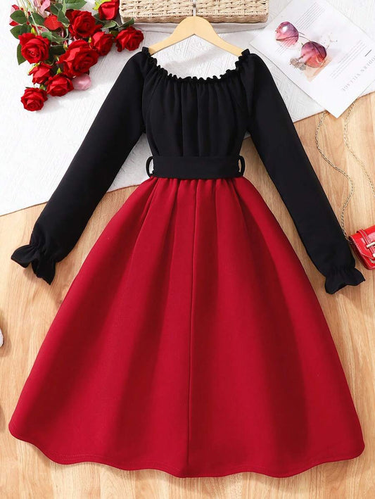 فستان منسوج براعم صغيرة على شكل قميص لبنات المراهقات