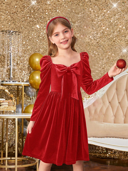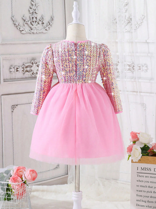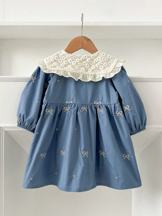 فستان أميرة طويل الأكمام مزين بطرز الفراشة