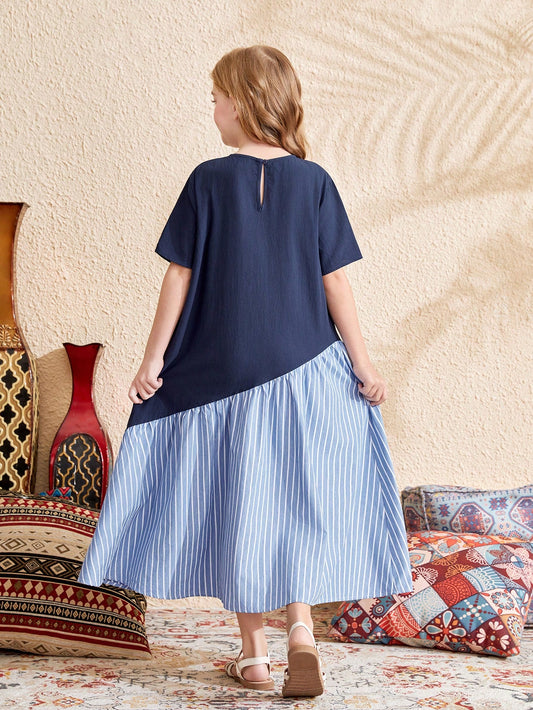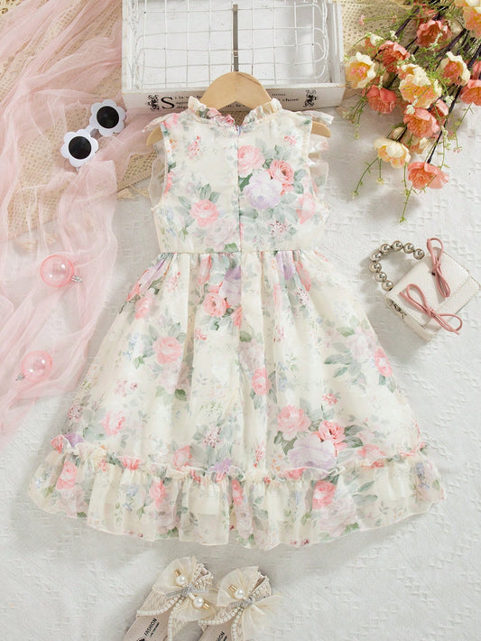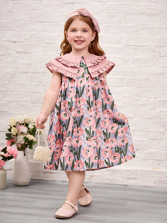 فستان وسط أنيق بياقة دمية وطبعات زهرية
