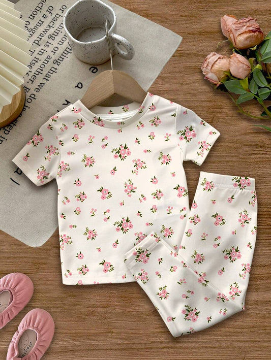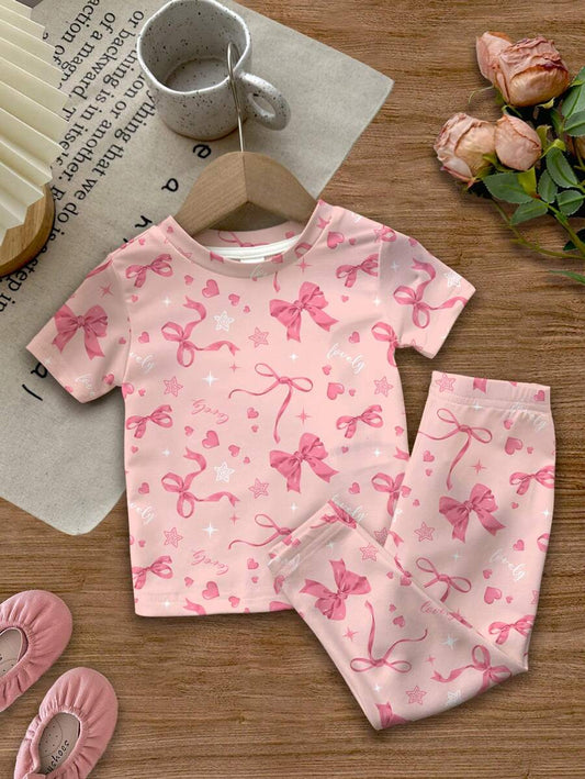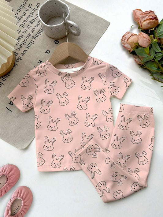 بدلة بنطلون و تي شيرت وردي مطبوع عليه أرنب