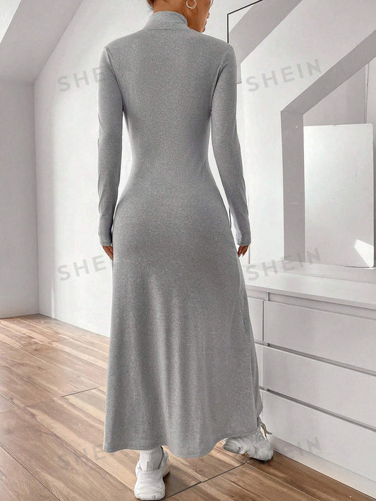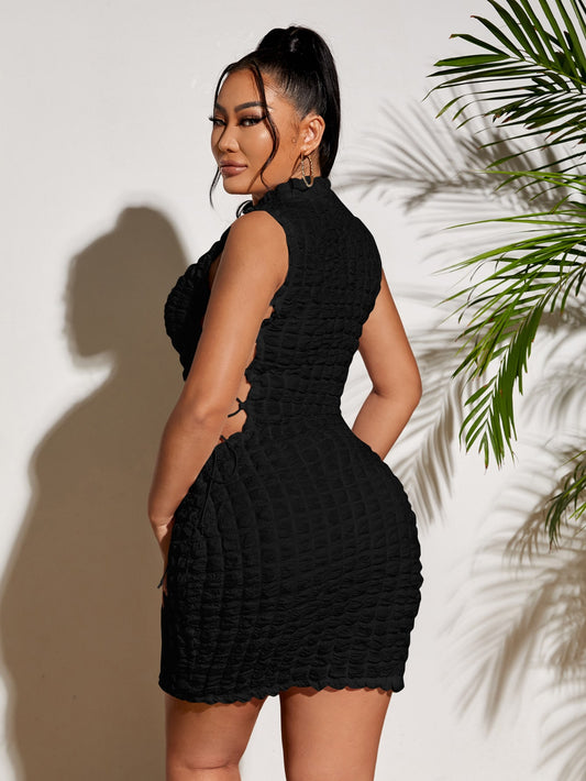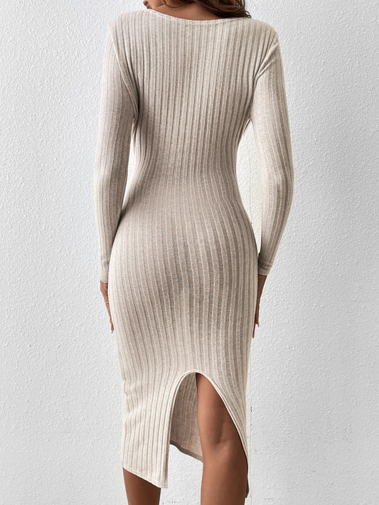 فستان قص مجوف مطوي امامي فتحة للفخذ