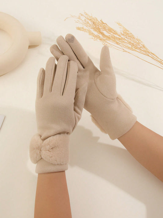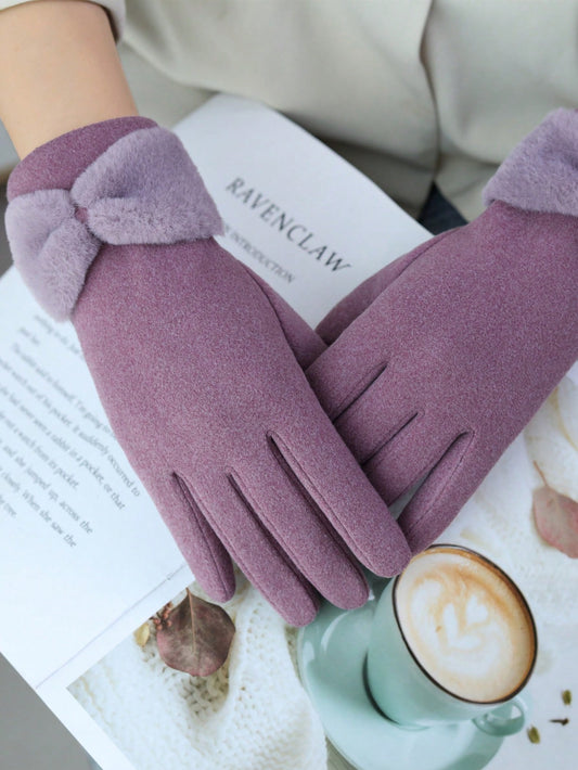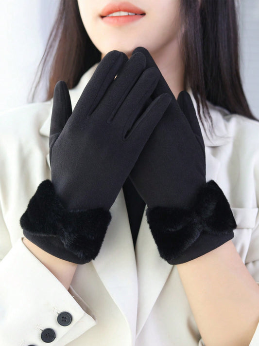 قفازات نسائية منقسمة الأصابع بفيونكة