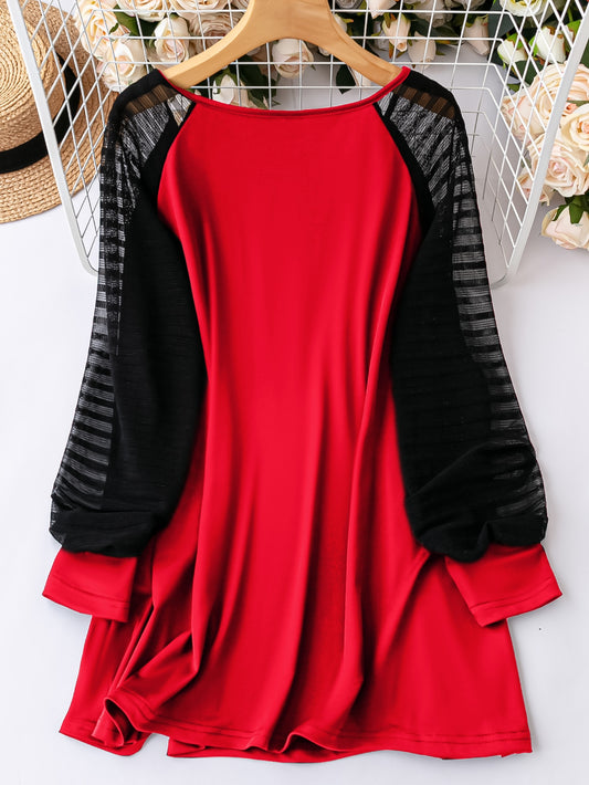 تي شيرت شبكة متباينة اكمام