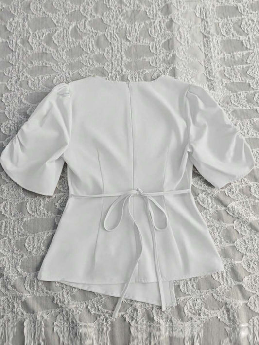 تي شيرت كاجوال للنساء بلون صلب مَطوي، صيفي