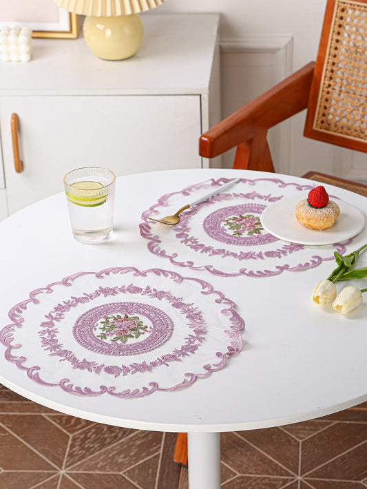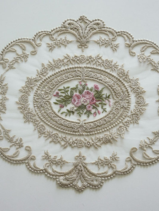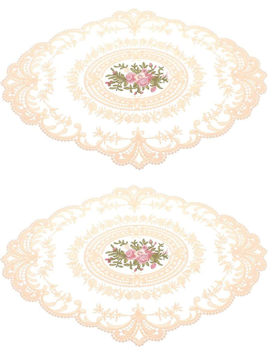 حصيرة كأس موديل فرنسي مطرز روز بيضاوي
