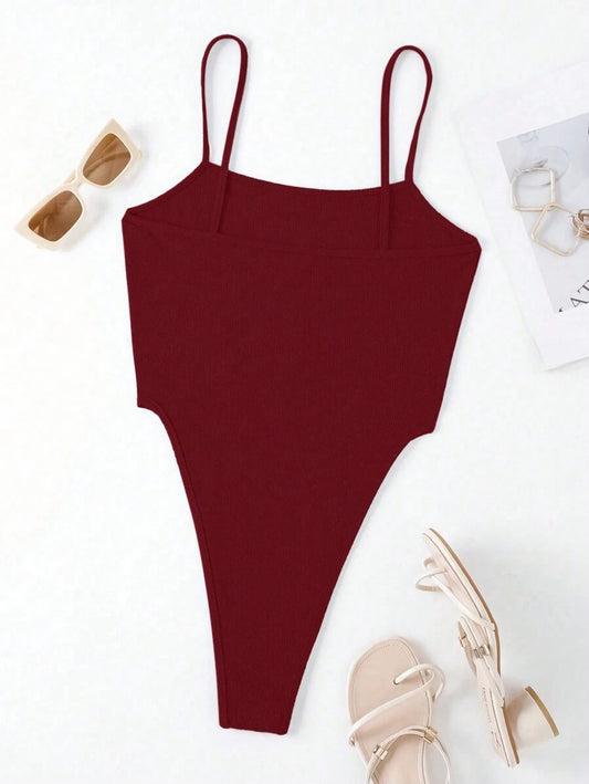 بادي نسائي أحادي اللون برقبة مستديرة عالية القص