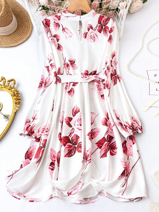 بدسويت ملائم نحيل بياقة مدورة بطباعة رخام