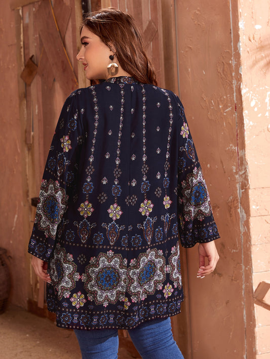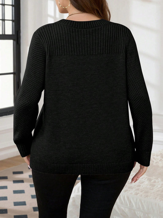بلوزة موحدة اللون رايات امامية مقاس كبير