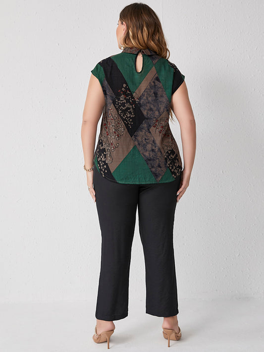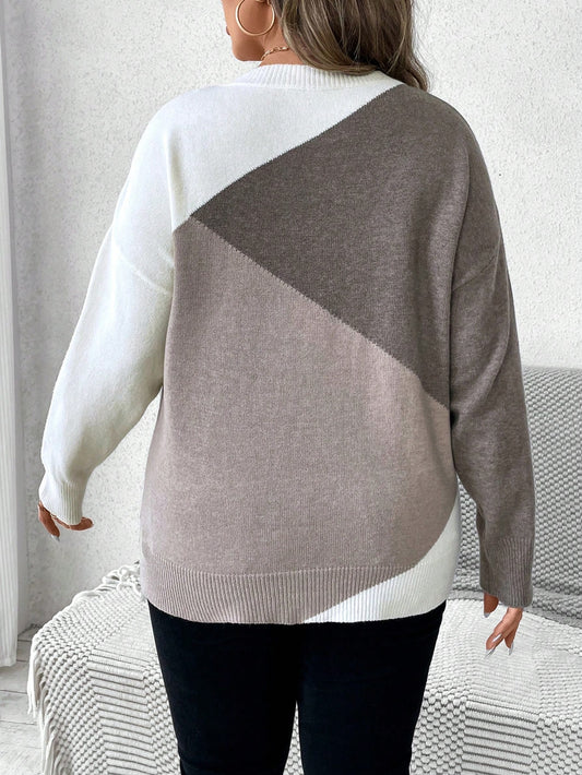 بلوزة متناسقة الألوان حجم كبير للمرأة