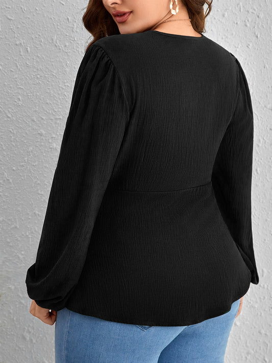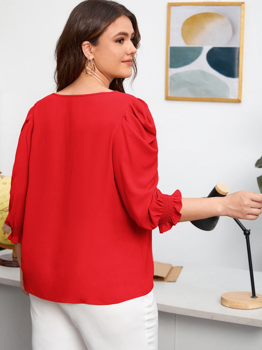 بلوزة مطوي امامي أكمام فانوس مقاس كبير