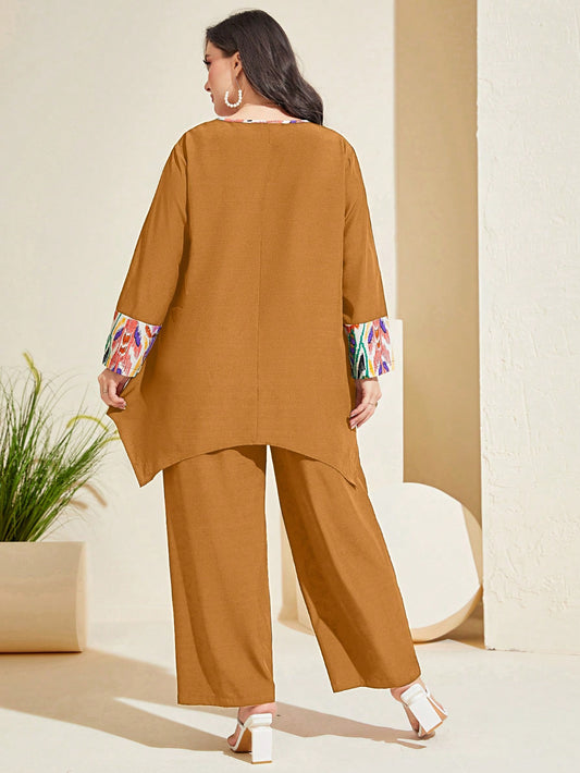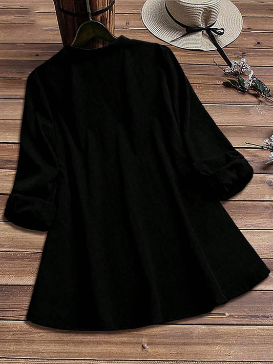 بلوزة موحدة اللون اكمام أسقف مقاس كبير
