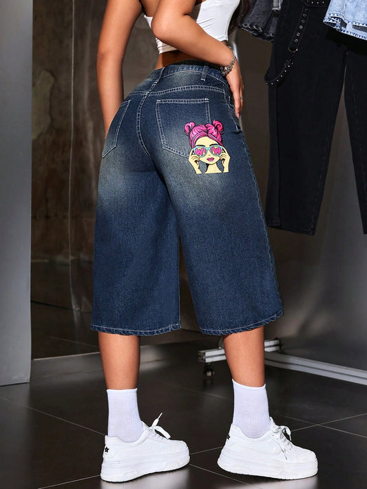 بناطيل ذات خصر مطاطي مطبوعة بتأثير الجينز المحبوك