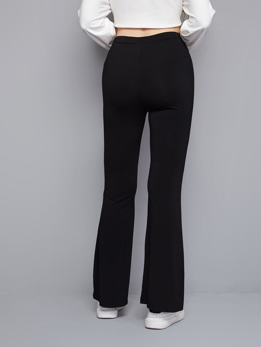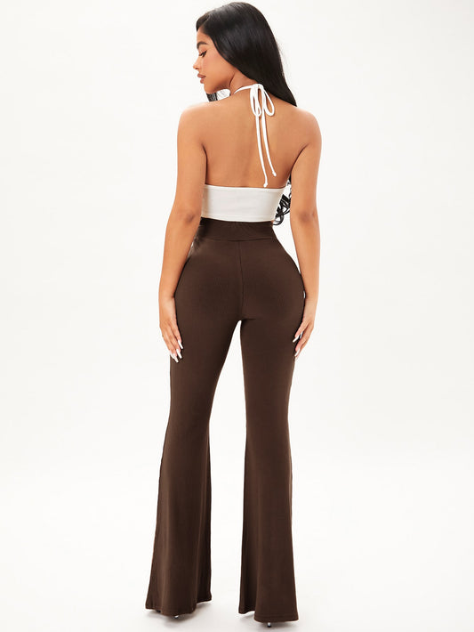 بناطيل بساق واسع موحدة اللون محبوك مضلع