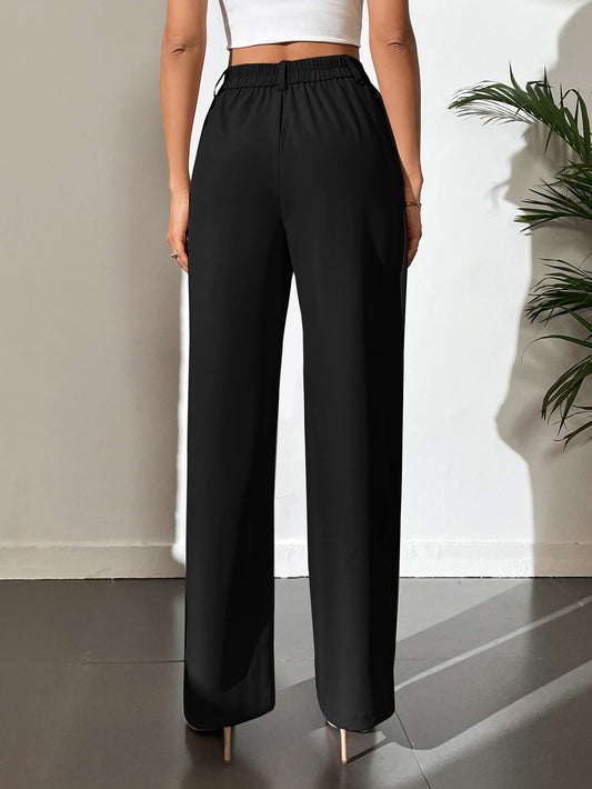 بنطلون بساق واسع ربطة امامية بحافة مطوي