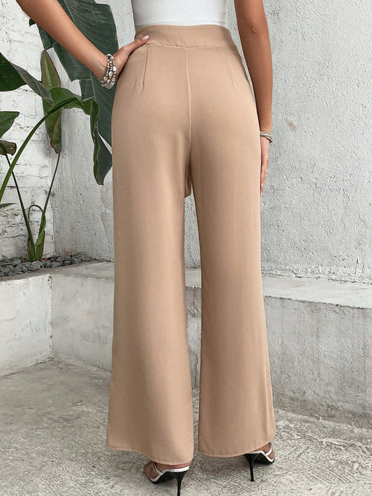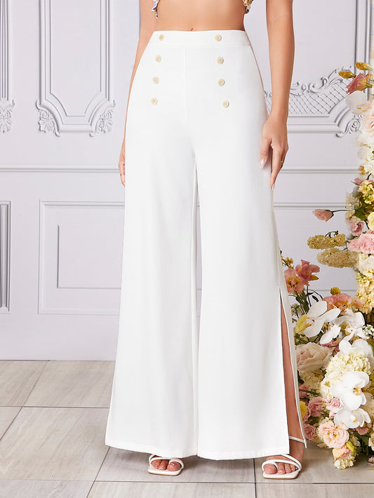 بنطلون بساق واسع موحدة اللون فتحة للفخذ