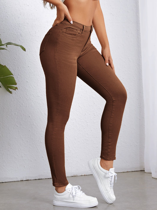 بنطلون جينز واسع مقلم بجيوب تصميم ريترو بلون سادة