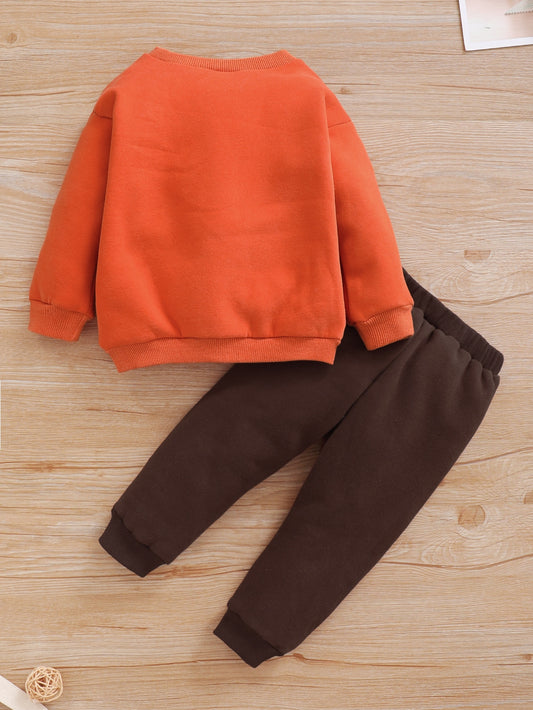 بنطلون رياضي مع بلوفر بنمط مطرز ثعلب للرضع