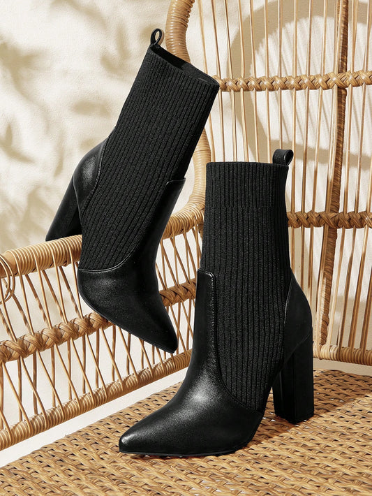 بوت طويلة حتى الركبة ذات كعب متوسط