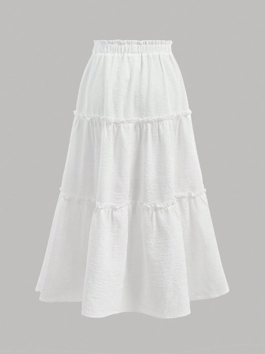 تنورة خصر عالي بالتجاعيد طبقتين حافة